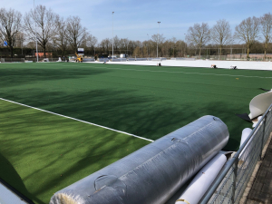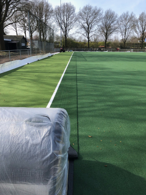 Wij begrijpen dat de nieuwe groene mat er vast erg aanlokkelijk uit gaat zien, maar we willen iedereen toch uitdrukkelijk verzoeken om de komende dagen het veld NIET te betreden, laat staan er op te gaan hockeyen. Maar als het veld inderdaad vrijdag 28 maart opgeleverd wordt, dan mag iedereen het diezelfde avond komen uitproberen! Verdere informatie volgt nog - hou je inbox en/of de website in de gaten!