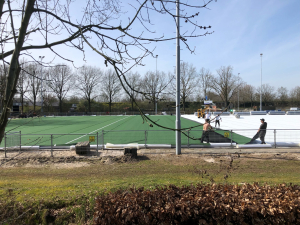 Het is de afgelopen week snel gegaan met de aanleg van het nieuwe veld. Vanavond kan er op gehockeyd worden!