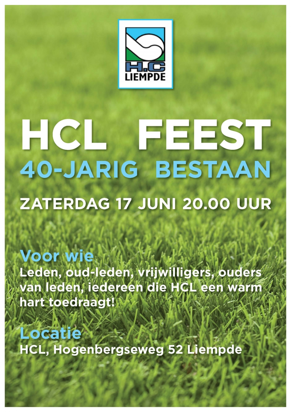 Op zaterdagavond 17 juni vieren we dat HCL 40 jaar bestaat dit jaar, en dat doen we met een feest voor al onze leden, oud-leden, vrijwilligers, ouders van leden en iedereen die HCL een